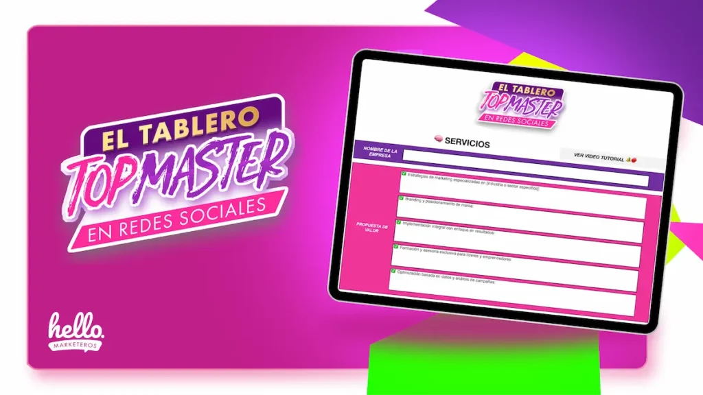 Descubre el Tablero TOP MASTER en Redes Sociales: la plantilla que ha ayudado a marcas líderes en el mercado a estructurar estrategias de alto impacto ahora ajustada a emprendedores como tu, para que no dependas de costosos community managers ni agencias de publicidad.